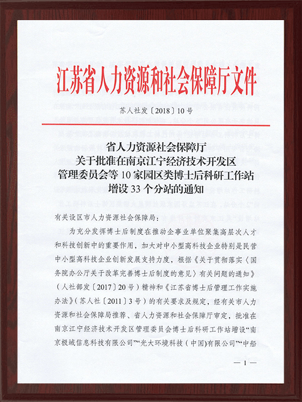 Goedkeuring postdoctoraal werkstation Substation Su Ren She Fa 2018-10