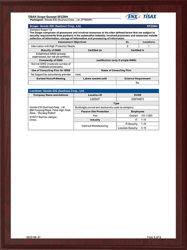 TISAX-certificaat SFZZ6H